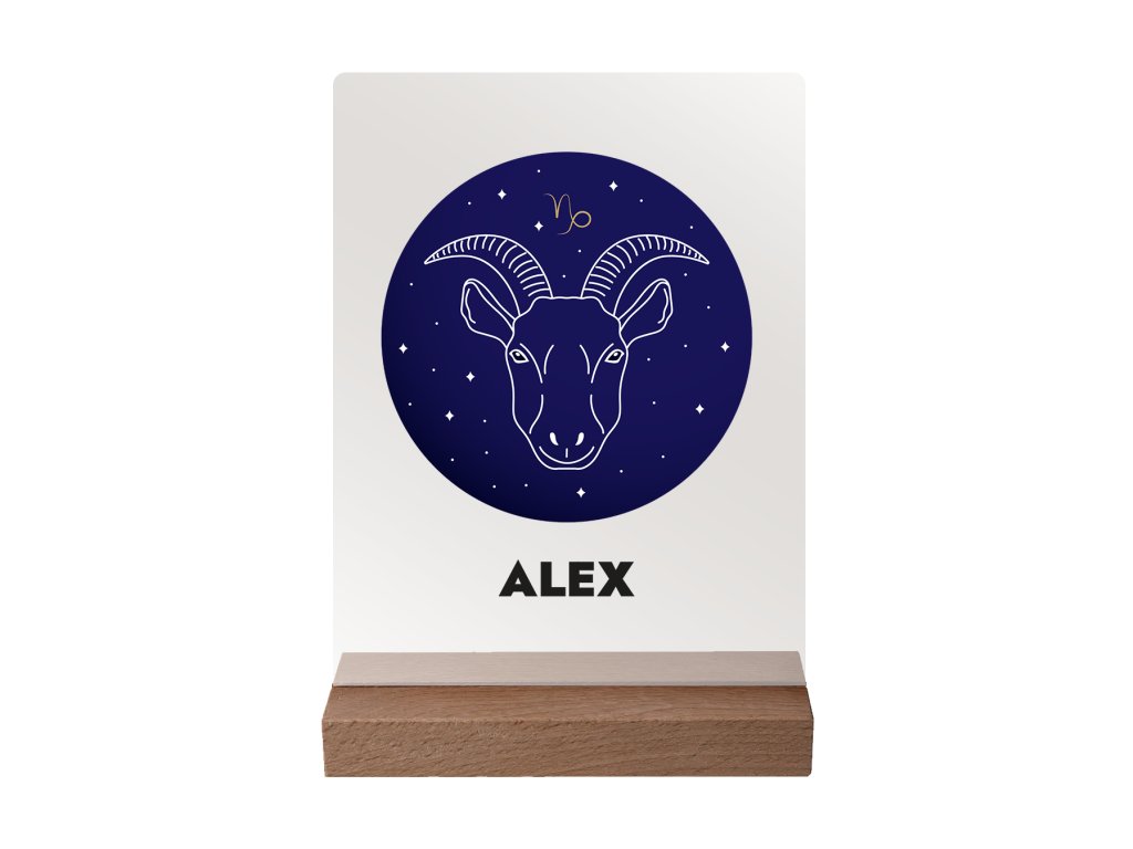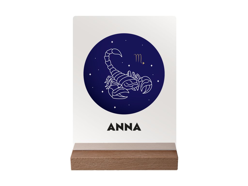 Vaše znamenie s menom na akrylovom skle - tmavý stojan