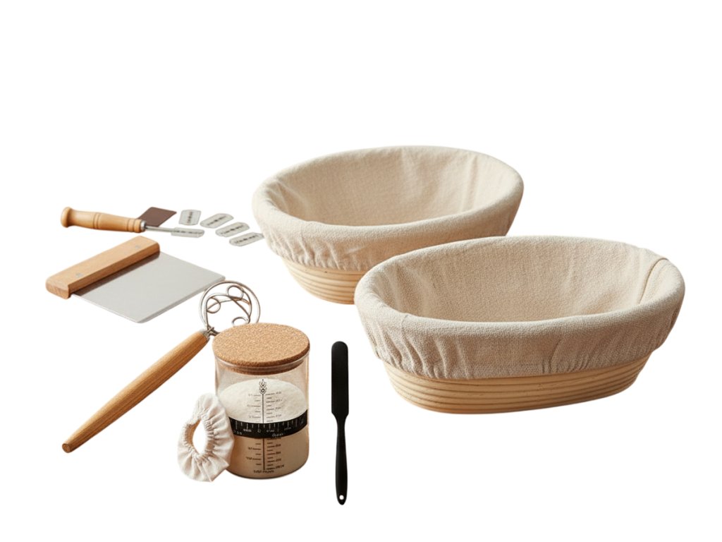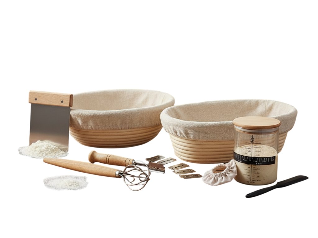 Veľká súprava na pečenie chleba je ideálnou voľbou pre všetkých milovníkov domáceho pečenia. Obsahuje všetko, čo potrebujete na prípravu dokonale tvarovaného a chutného chleba, či už pečiete každý týždeň, alebo len príležitostne. Súčasťou balenia sú dva kvalitné ratanové košíky s látkovou vložkou a praktické nástroje, ktoré vám uľahčia prácu s cestom, jeho tvarovanie aj konečnú úpravu pred pečením.