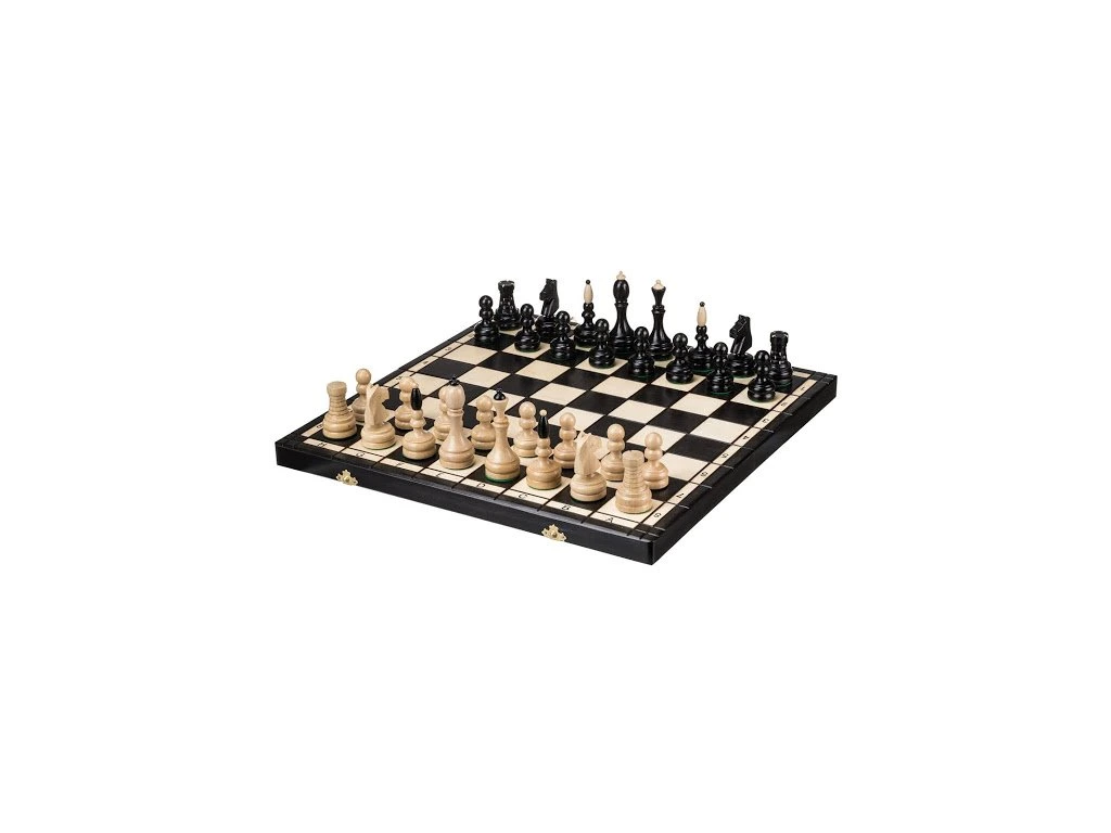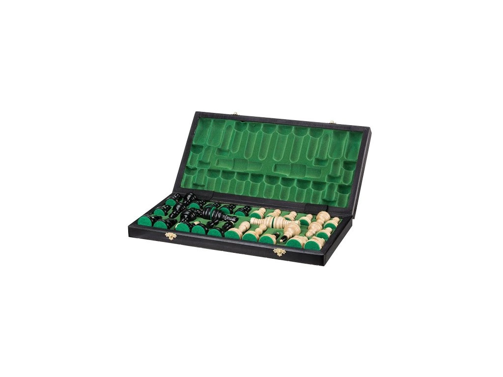 Do detailu prepracované drevené šachy s plochou 48 x 48 cm poteší každého milovníka tejto klasickej hry. Vďaka tomu, že sú figúrky ručne vyrezávané, je každý kus originál. Výška kráľa je 10,5 cm a všetky figúrky sú uložené v presne padnúcom polstrovaní.