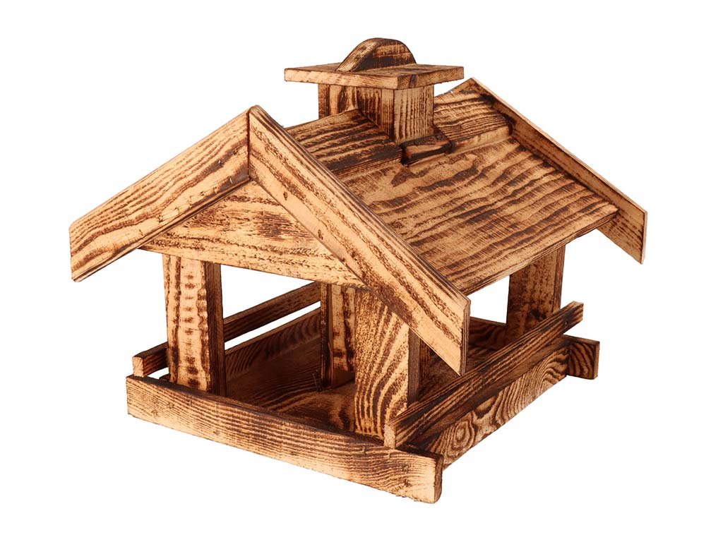 Použité drevo bolo špeciálne opálené, aby sa zvýšila jeho odolnosť, ale predovšetkým dodáva kŕmidlu veľmi atraktívny a originálny vzhľad.