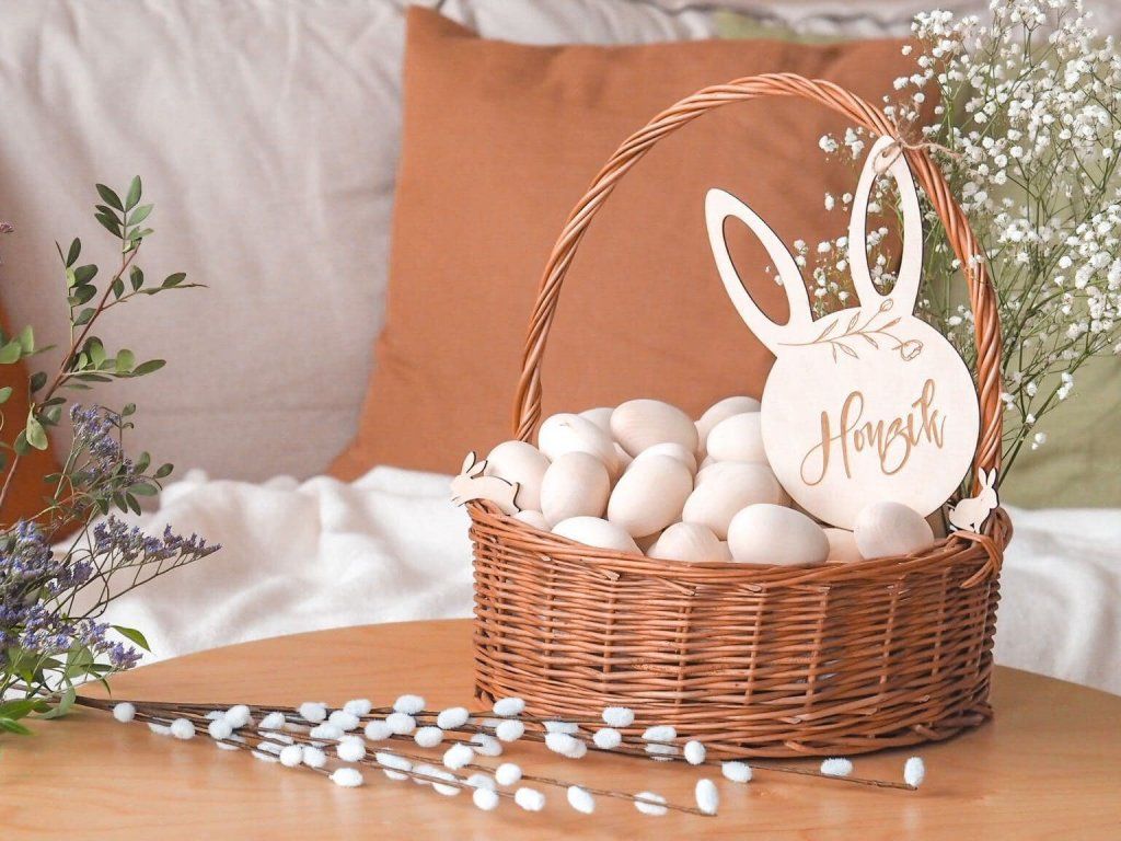 Veľkonočný zajačik s menom malého šibača nenechá nikoho na pochybách, koho je košík s vyšibanými dobrotami. Konečne predídete hádkam medzi súrodencami a už nikdy nebudete musieť riešiť, kto komu zobral čokoládové vajíčko z košíka. Drevený zajačik je vyrezaný z 3mm preglejky a radosť bude robiť dovtedy, kým vašim ratolestiam nebude trápne si prirobiť zajačika na košík. Potom už bude len príjemnou spomienkou a veľkonočnou dekoráciou vo vašom domove. A stále bude radosť na neho pozerať!