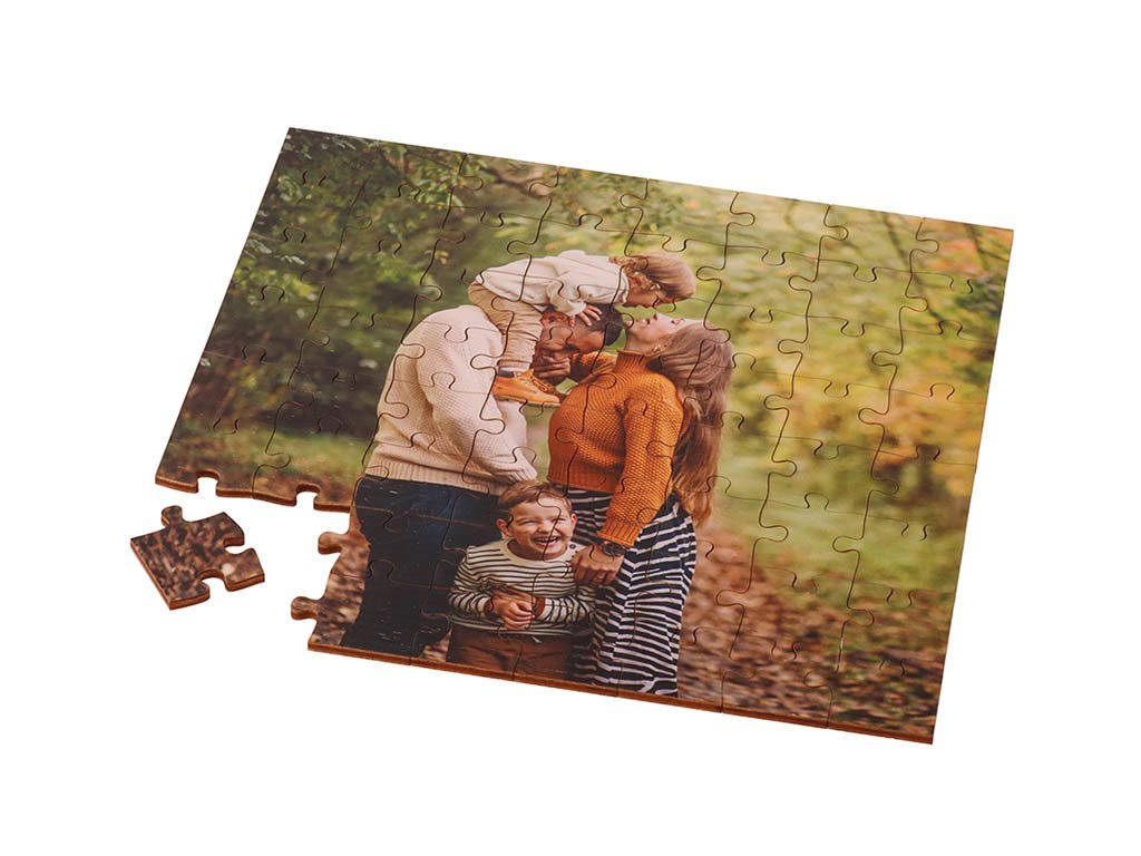 Fotografiu, ktorú nám pošlete, vytlačíme priamo na brezovú preglejku, ktorú následne vytvrdíme UV svetlom, aby sa potlač dreva nerozmazávala. Fotografia musí byť v štvorcovom formáte, hotové puzzle obsahuje 64 dielikov, ktoré do seba perfektne zapadajú.