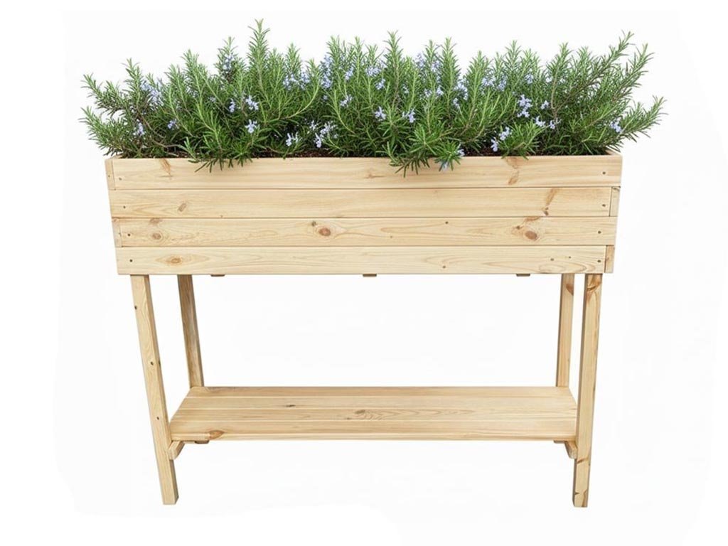Vyvýšený drevený truhlík s policou 120 cm - borovica