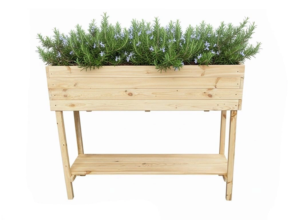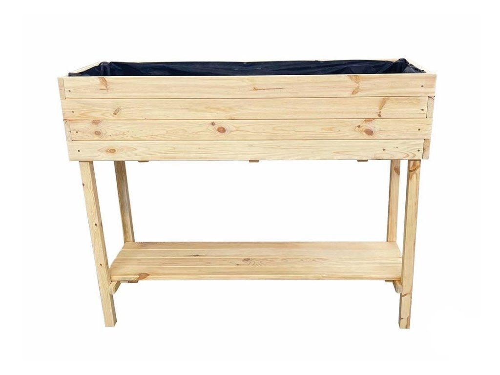 Vyvýšený drevený truhlík s policou 80 cm - borovica
