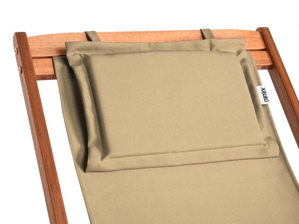 Súčasťou je polyesterový poťah a vankúš v béžovej farbe. Šírka poťahu je približne 44 cm.