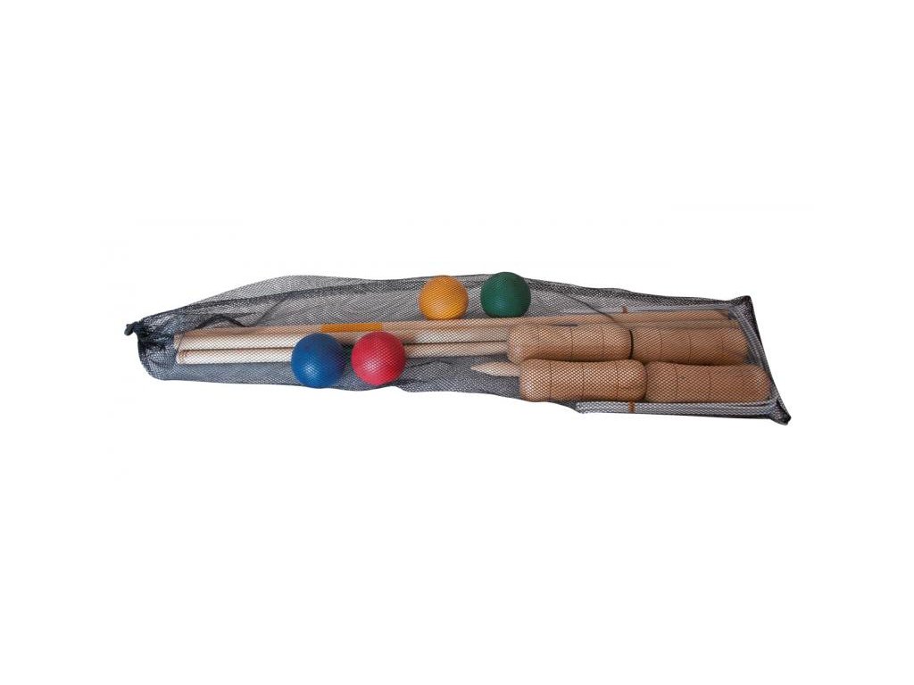 Súprava obsahuje 24 kusov: 4x drevená palica, 4x drevené gule, 2x drevený kolík, 10x drevená bránka.