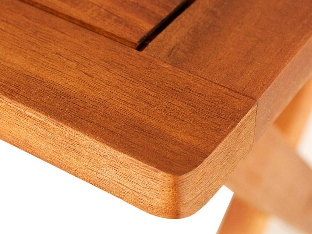 Skladací stolík z masívneho, predom olejovaného akáciového dreva vyniká nielen precíznym spracovaním, ale aj vysokou kvalitou. Akáciové drevo je mimoriadne tvrdé, odolné a veľmi trvanlivé, čo zaručuje dlhú životnosť stolíka.