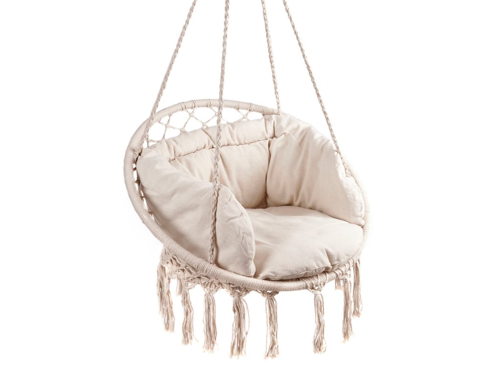 Závesné hojdacie kreslo s vankúšom prírodné