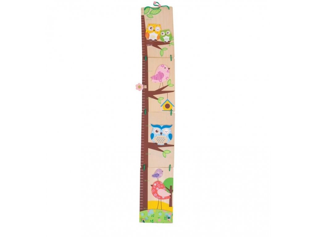 Drevený závesný meter s veselým motívom sovičiek, deti sa s radosťou merajú a následne všetkým okolo oznamujú, ako a kolľko vyrástli.